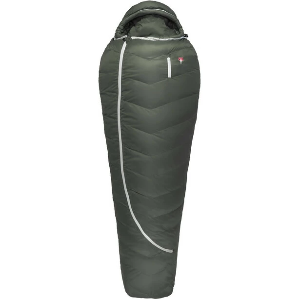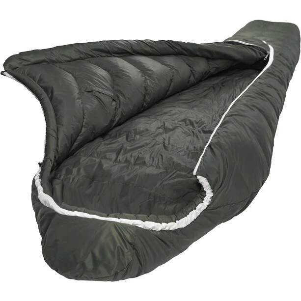 The wool also makes the sleeping bag more resistant to moisture than pure down. The pillow pocket is also very practical. Just insert a fleece jacket here and you already have a non-shifting pillow. The highlight is the zip which is round at the bottom and which means that if it should get too hot at any time, you can conveniently place your feet on top of the sleeping bag.