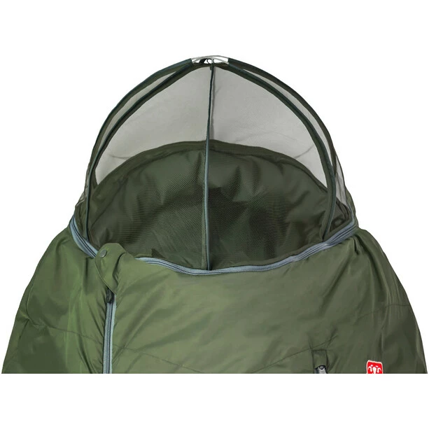 The integrated 3D-mosquito net puts pay to being disturbed by the troublesome insects: The net is spanned over your head by means of two small rounded arch poles and thus offers you perfect protection from these little, uninvited guests. The net can be stored in the practical pocket on the pack sack.