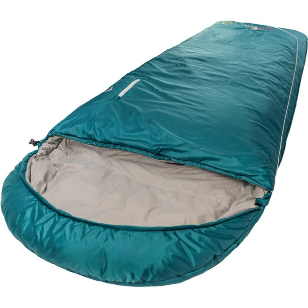 Another layer of synth down transfers humidity to the wool, so that there always is a dry feeling inside the sleeping bag. The highly breathable outer material of the Biopod Wolle Goas Comfort is water-repellent, dries very fast and does not rustle. On the inside, there is highly breathable micro fibre which is soft and agreeable to the skin. A retaining strap prevents any pinching when opening or closing the zipper. In addition, the zipper can be opened at the bottom, which improves air circulation.