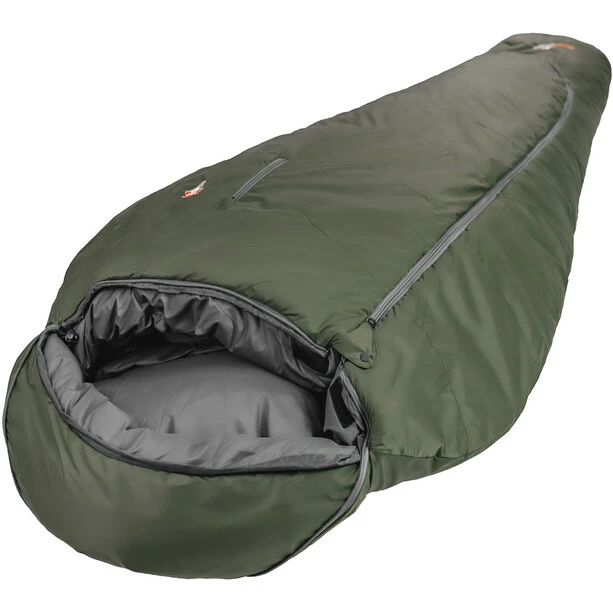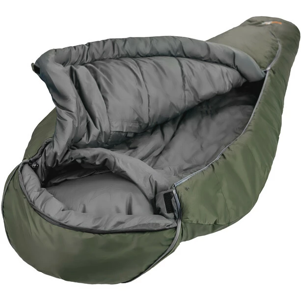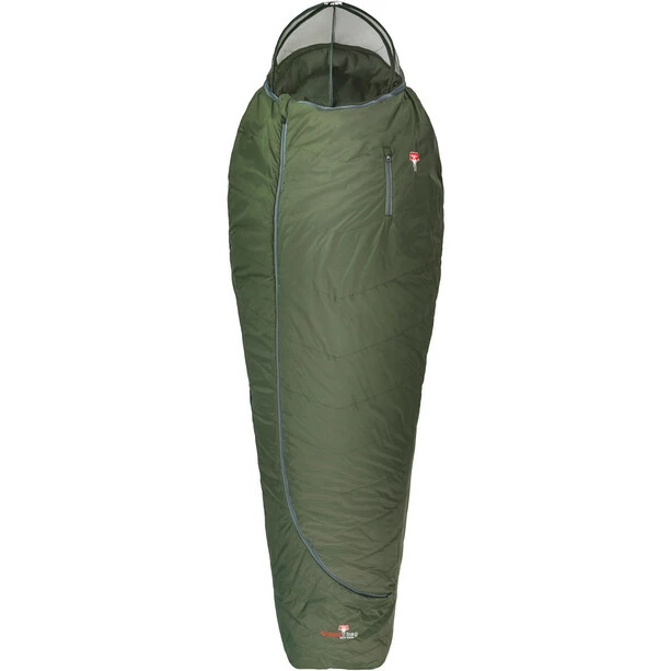 The integrated 3D-mosquito net puts pay to being disturbed by the troublesome insects: The net is spanned over your head by means of two small rounded arch poles and thus offers you perfect protection from these little, uninvited guests. The net can be stored in the practical pocket on the stuff sack. The Survival’s outer shell is particularly robust and resilient and is also equipped with rubber grips on the underside. This prevents the annoying habit of the sleeping bag slipping off the thermal mat, even on uneven ground.
