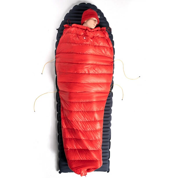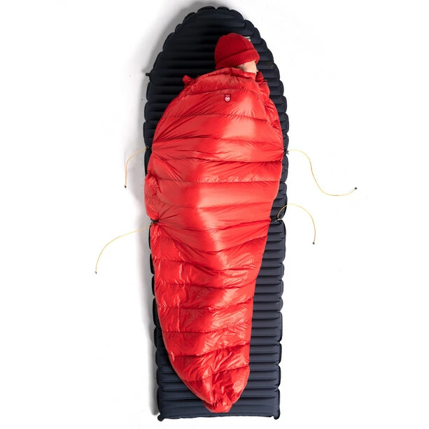 It can completely open into a blanket or act as a hammock under quilt. The draft blocking foot box closure guards you against the cold. the design features sleeping pad attachment loops.