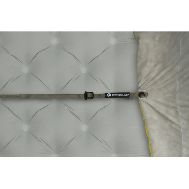 At higher temperatures, the Ember can be used as a traditional blanket to provide room for the arms and legs. When the weather is colder and you need more warmth, you can pull the drawcord at the foot end and connect the ember to the sleeping mat using the push buttons.